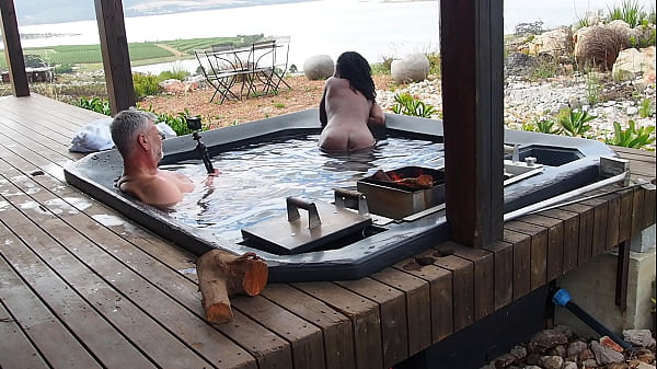 "Steam, Sun & Serenity" Ebony Secretary fucks her boss in the hottub